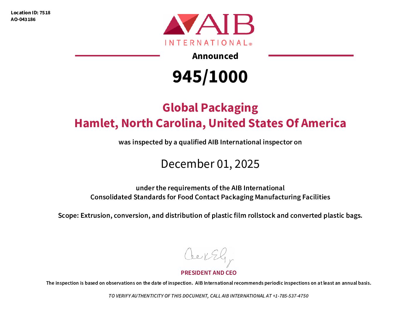 We pursue and earn third party certifications to allow independent organizations to review and verify that our process and products comply with standards for safety, quality and/or performance. Quality and Safety and Sustainability are integral to Global Packaging’s corporate business principles. These principles guide us toward the continuous improvement of our management systems in order to guarantee product safety, prevent quality incidents and eliminate defects and reduce our environmental impact through regular review of our objectives and results. We continually strive for excellence, which is our pledge to our customers and our staff.